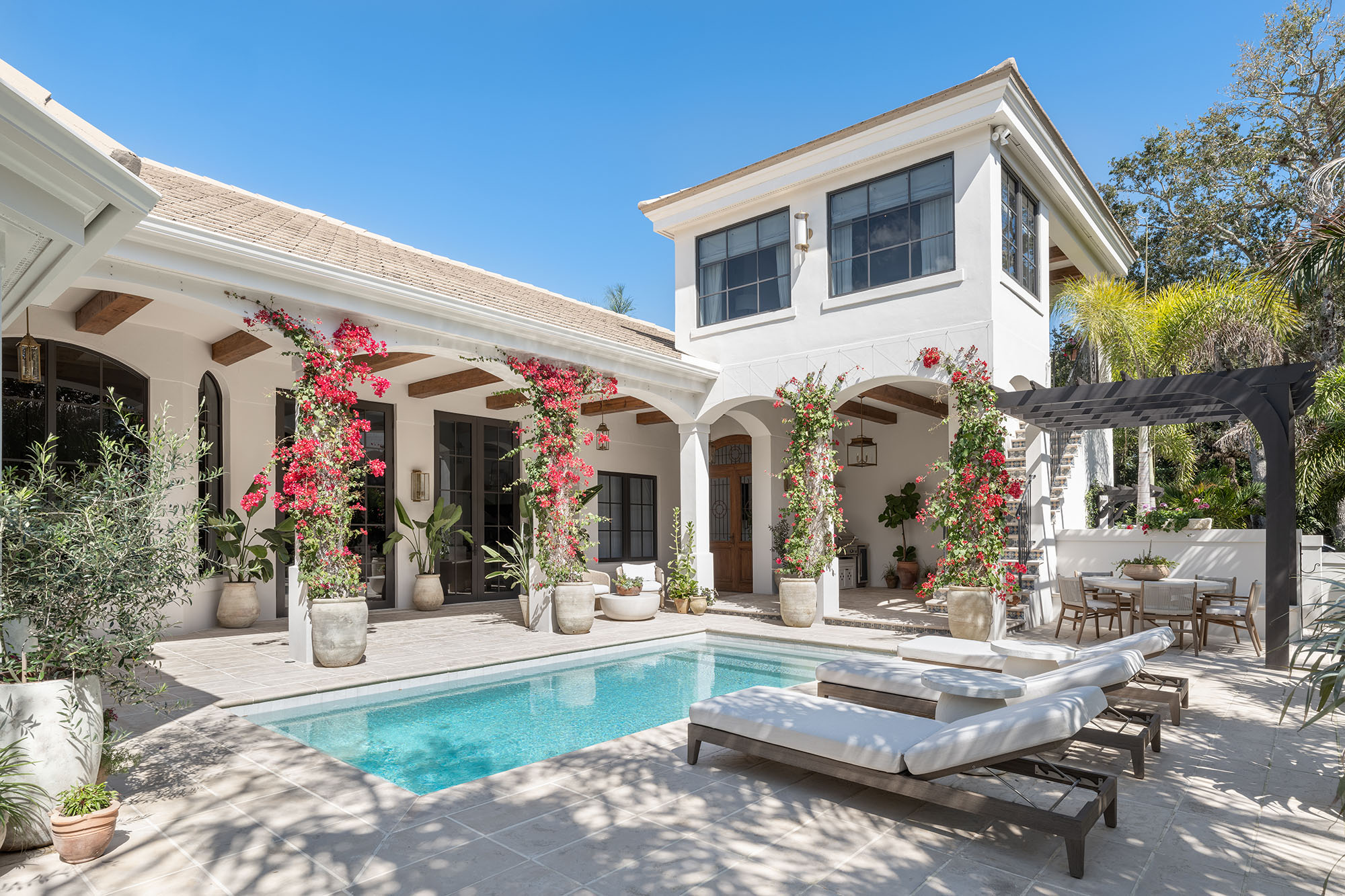 effortless living, the home opens to a serene courtyard and pool,